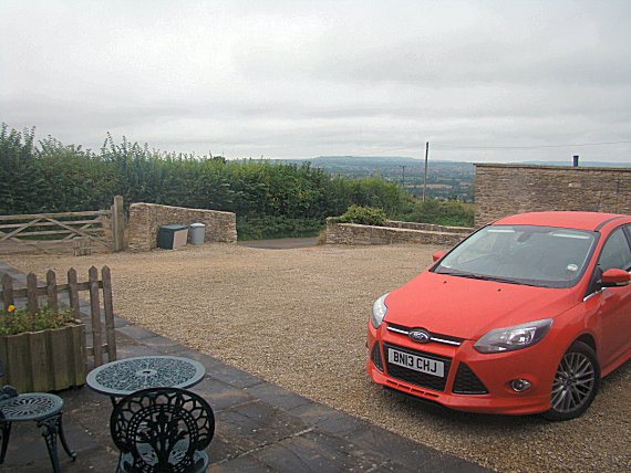 hired 2 litre Ford Focus Diesel parked in front of the Patio
